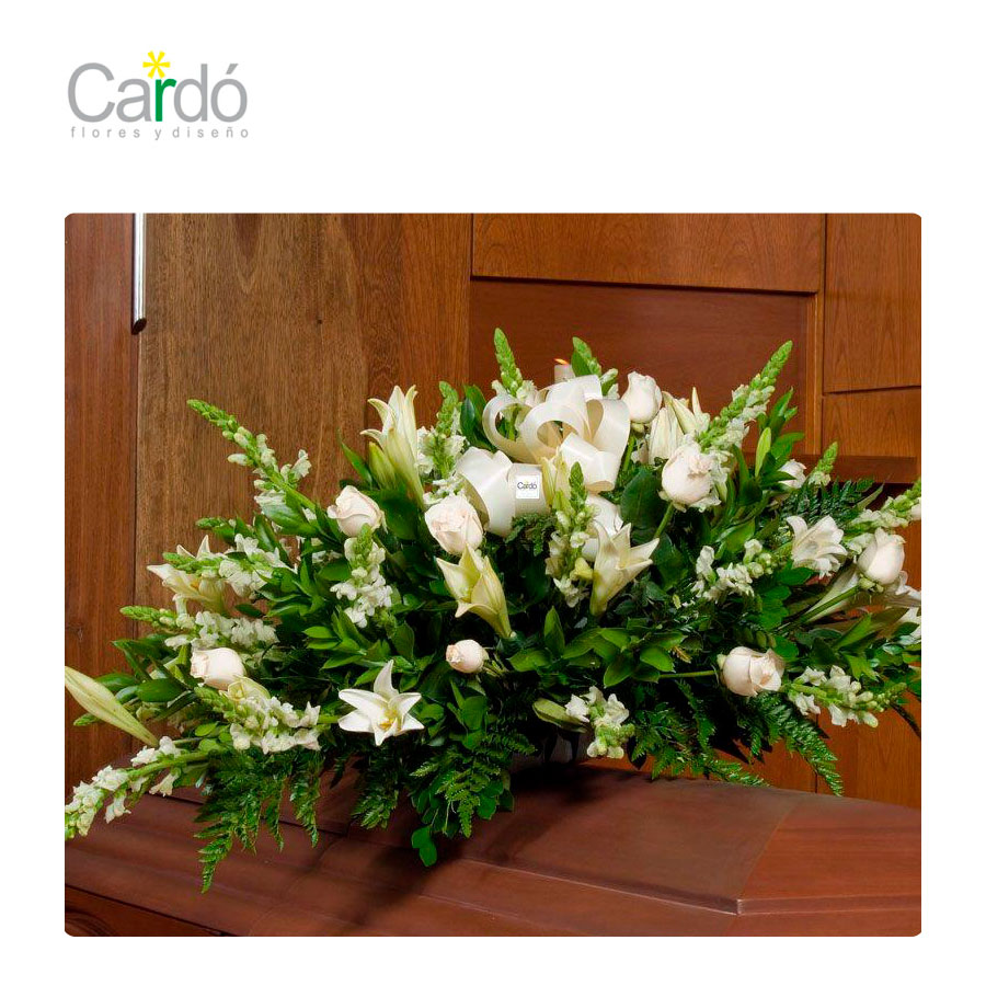 Corona de flores en rosas y azucenas.